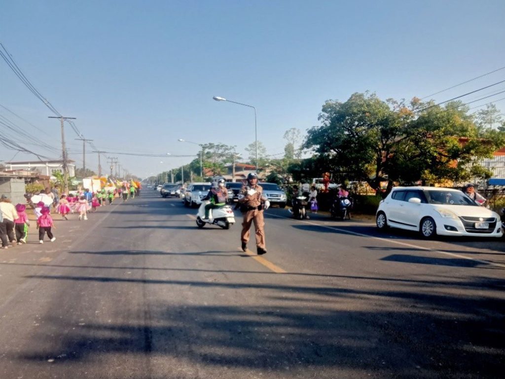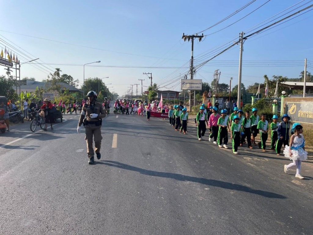 อำนวยความสะดวกการจราจรขบวนพาเหรดฯ 8 มกราคม 2025 โดย adminkhunhan / งานจรมกราคม68 เมื่อวันที่ 8 ม.ค. 2568 เวลา 09.00 น. ร.ต.อ.พฒน จงดี รอง สว.จร.สภ.ขุนหาญ ร้อยเวร 6-0 พร้อมด้วยสายตรวจจราจร สายตรวจจราจร อาสาจราจร อำนวยความสะดวกการจราจร ว.4 ขบวนพาเหรด กิจกรรมวันเด็กแห่งชาติและกีฬาสีภายในโรงเรียนบ้านศิวาลัย ต.สิ อ.ขุนหาญ จ.ศรีสะเกษ