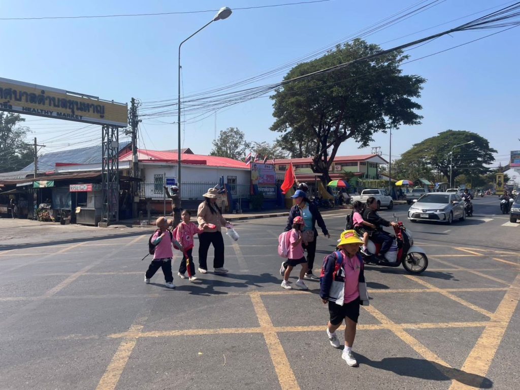 อำนวยความสะดวกการจราจร กิจกรรมเดินทางไกลของนักเรียนโรงเรียนบ้านสิริขุนหาญ