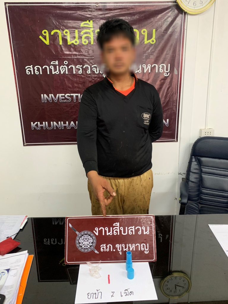 จับกุมยาเสพติด คดีครอบครอง 11 มกราคม 2025 โดย adminkhunhan / งานสืบมกราคม68 วันที่ 10 มกราคม 2568 เจ้าหน้าที่ตำรวจชุดสืบสวน สภ.ขุนหาญ ได้ร่วมทำการจับกุมตัว นายอภิชาติ ฯ ในข้อหา มียาเสพติดให้โทษประเภท 1 (เมทแอมเฟตามีนหรือยาบ้า) ไว้ในครอบครองเพื่อเสพโดยผิดกฎหมายพร้อมของกลาง – ยาบ้าเม็ดสีส้ม 2 เม็ด