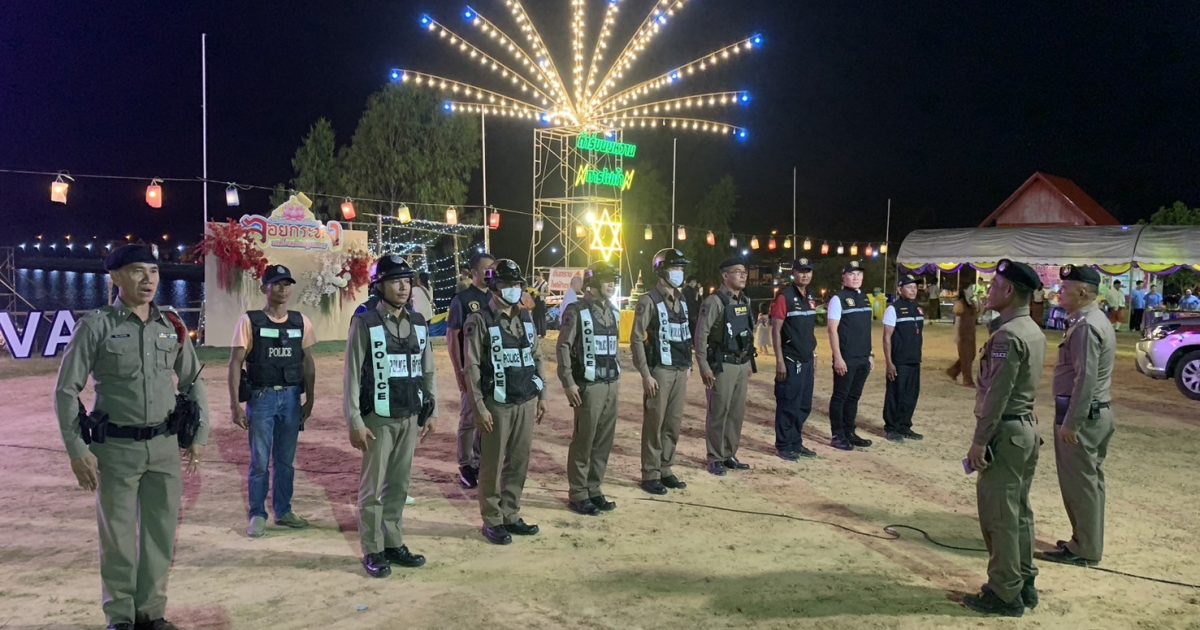 รักษาความสงบเรียบงานประเพณีลอยกระทง 16 พฤศจิกายน 2024 โดย adminkhunhan / งานปพฤศจิกายน67 วันที่ 15 พฤศจิกายน 2567 พ.ต.ท.นิสิทธิ์ พิมวัน รอง ผกก.ป.สภ.ขุนหาญ, พ.ต.ท.เสรี บุตรอุดม สวป.สภ.ขุนหาญ นำกำลังข้าราชการตำรวจ สภ.ขุนหาญพร้อมอาสาสมัครตำรวจบ้าน ดูแลรักาาความสงบเรีบยร้อยงานประเพณีลอยกระทงประจำปี 2567