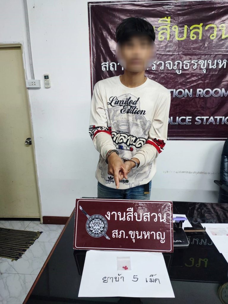 จับกุมยาเสพติด คดีครอบครอง 17 ตุลาคม 2024 โดย adminkhunhan / งานสืบตุลาคม67 วันที่ 16 ตุลาคม 2567 เจ้าหน้าที่ตำรวจชุดสืบสวน สภ.ขุนหาญ ได้ร่วมทำการจับกุมตัว นายธนากร ฯ ในข้อหา มียาเสพติดให้โทษประเภท 1 (เมทแอมเฟตามีนหรือยาบ้า) ไว้ในครอบครองเพื่อเสพโดยผิดกฎหมาย พร้อมของกลาง – ยาบ้าเม็ดสีส้ม 5 เม็ด